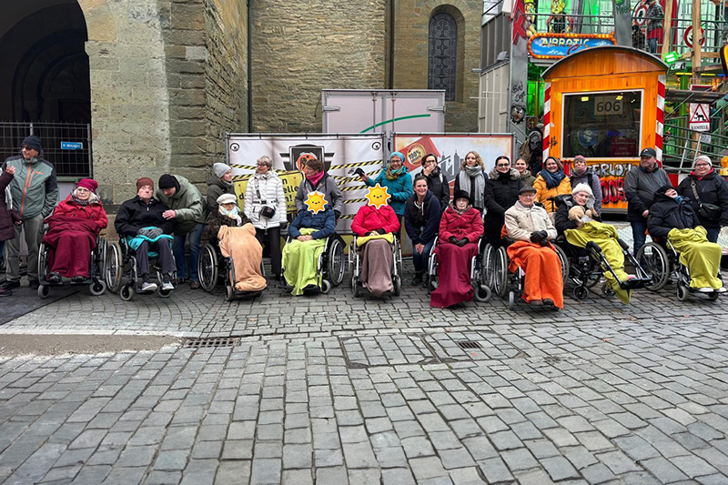 Zwei Tage später ging es dann mit Bewohnerinnen und Bewohnern auf die Kirmes. Dank vieler unterstützender Hände war es ein gelungener Ausflug. Viele Karussells wurden bestaunt, der Geruch von Popcorn und Mandeln weckte Erinnerungen, Erlebtes wurde ausgetauscht. Zur Stärkung gab es Bratwurst, Pommes und Getränke. Natürlich gab es auch Bullenauge, wie es die Tradition vorschreibt. Es war sehr kalt, daher war es auch gut um sich zu wärmen. Wünsche der Ausflügler und Daheimgebliebenen wurden erfüllt. So gab es Luftballons, Mandeln, Herzen und vieles mehr. Als es im Dunkeln zurück zum Hanse-Zentrum ging, waren alle froh, wieder im Warmen zu sein.