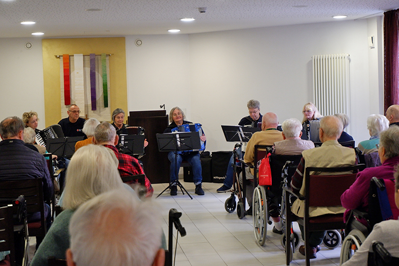 Eine Stunde Hits und Evergreens brachte Ende Januar Schwung und Freude ins Haus.  Es wurde mitgesungen und geschunkelt, zum Abschluss gab es viel Applaus. Das Konzert vom DRK Akkordeonorchester Ortsverein Soest e.V. erfreute die Bewohnerinnen und Bewohner des Hanse-Zentrums. Unter der Leitung von Sabine Große-Berkhoff spielten 5 Akkordeon-Spielende und ein Rhythmusspieler eine Stunde lang ehrenamtlich.