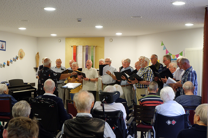 Sichtlich Freude zeigten die Frauen und Männer Ende Juni: Die Soester Männerchorgemeinschaft unter Leitung von Daniel Pütz kam im Soester Alten- und Pflegeheim Hanse-Zentrum zu einem kleinem Konzert am Nachmittag zu Gast. Es wurden einige bekannte Heimat- und Volkslieder sowie Gedichte vorgetragen, die Paul Göbel moderierte. Es herrschte eine fröhliche Stimmung.