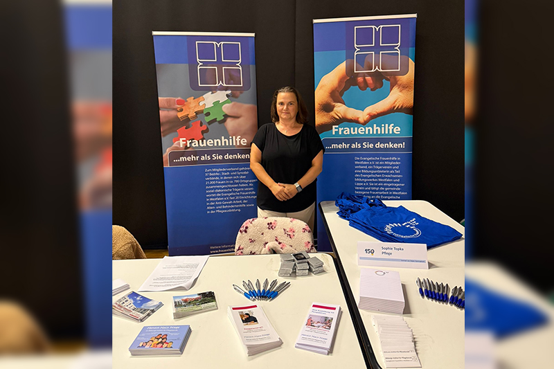 Im Rahmen der Berufsmesse „Mission Zukunft – Treffen der Generationen“ am Conrad-von-Soest Gymnasium im Oktober 2025 präsentierten sich die Soester Altenhilfe-Einrichtungen der Evangelischen Frauenhilfe in Westfalen – Hanse-Zentrum und Hanse-Zentrum (LOH) – mit einem gemeinsamen Stand. Ziel war es, interessierten Schüler*innen der Jahrgangsstufen 10, Einführungsphase (EF) und Q1 Einblicke in die vielfältigen beruflichen Möglichkeiten in der Altenpflege zu geben und insbesondere für den Bundesfreiwilligendienst (BFD), für Praktika sowie das Freiwillige Soziale Jahr (FSJ) zu werben