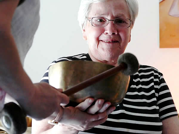 Interessierte konnten an geführten Rundgängen durch verschiedene Bereiche des Hauses teilnehmen, Klangschalenmassage und Aromatherapie erleben, in das Gruppenagebot für Russischsprachige hineinschnuppern, sich beim Kegeln, Bingo oder der Bibelstunde beteiligen, Motomed kennenlernen und mit vielen der 80 Bewohnerinnen und Bewohner und Fachkräften ins Gespräch kommen. Fürs leibliche Wohl wurde ebenfalls gesorgt.