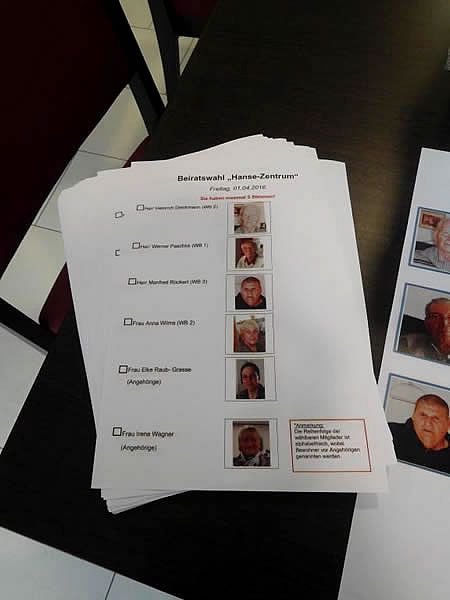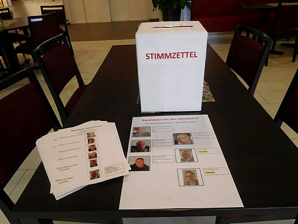 Am 1. April war es wieder soweit - Beiratswahlen standen im Soester Alten- und Pflegeheim, dem Hanse-Zentrum an. Wahlberechtigt waren 75 der 80 Bewohnerinnen und Bewohner und davon 51 haben ihre Stimme angegeben - von einer solchen Wahlbeteiligung träumen viele!
