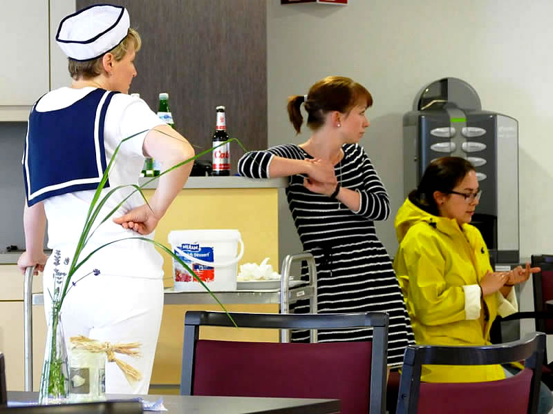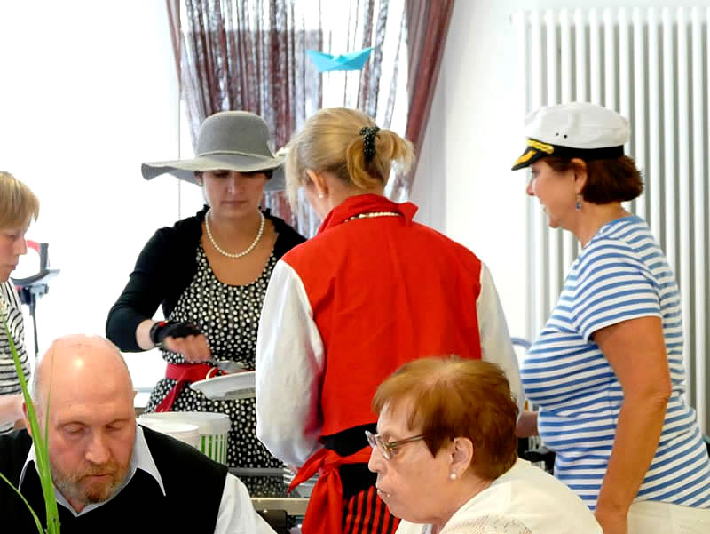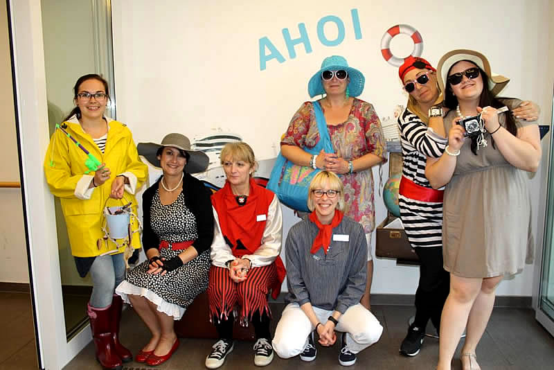 Das Motto des diesjährigen Sommerfestes „Eine Seefahrt, die ist lustig…“ zeigte sich in der liebevollen Dekoration mit Hafenbar und maritimen Gegenständen sowie den Kostümen der Mitarbeitenden. Trotz bedeckten Wetters ließ sich die Stimmung nicht trüben bei Kaffee und Kuchen, buntem Programm und Würstchen vom Grill.