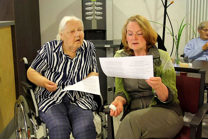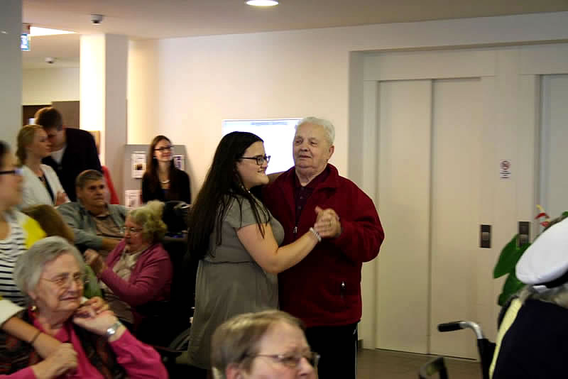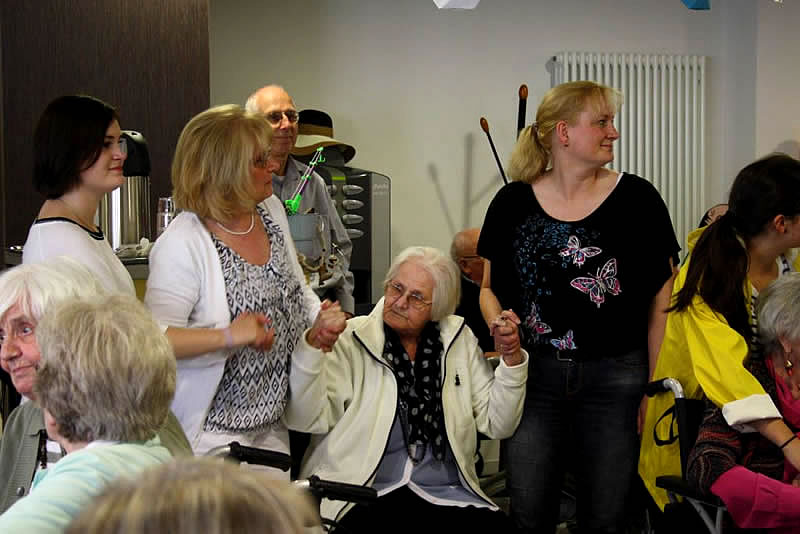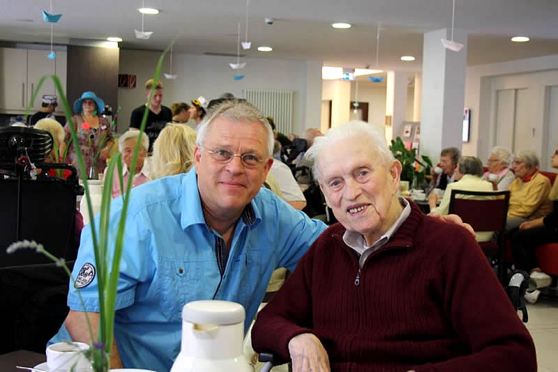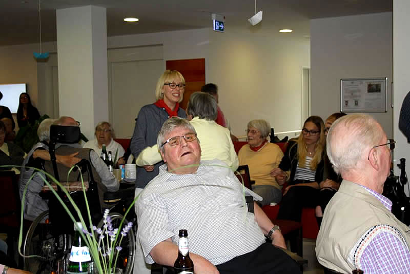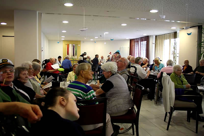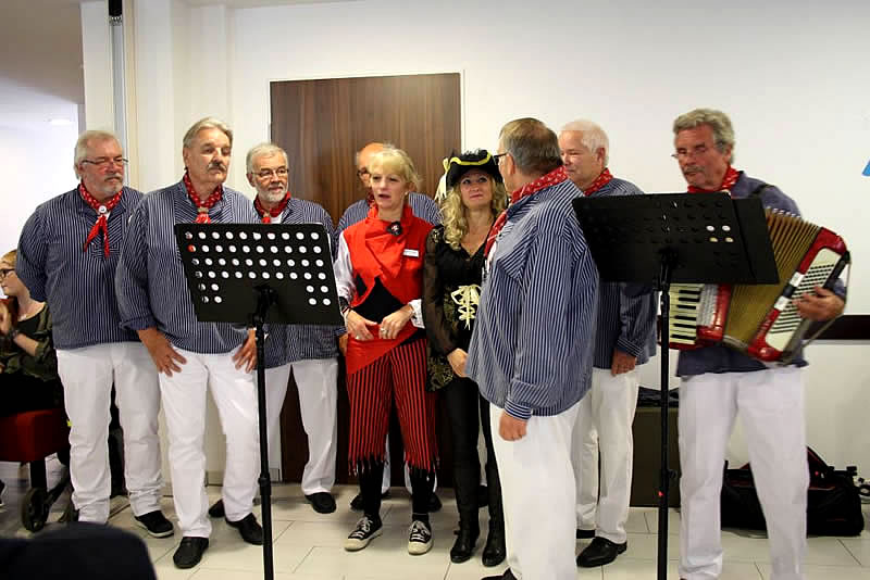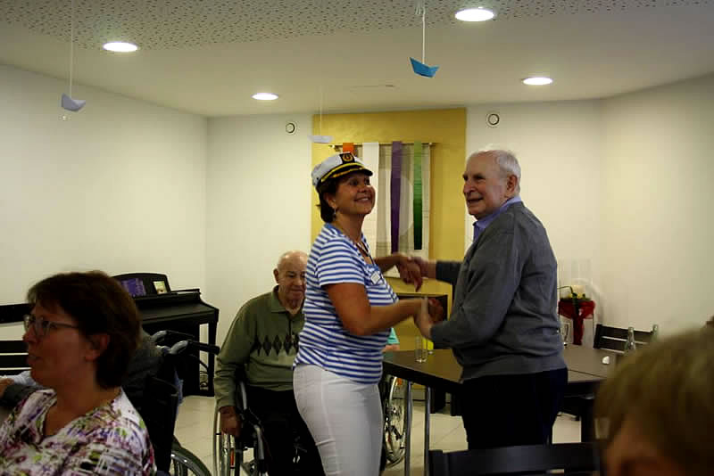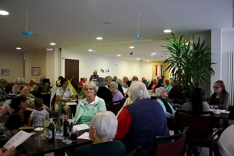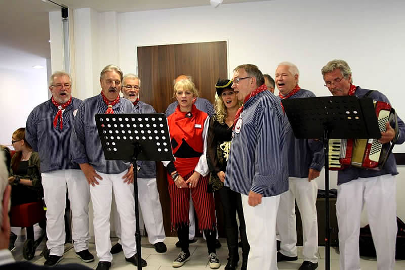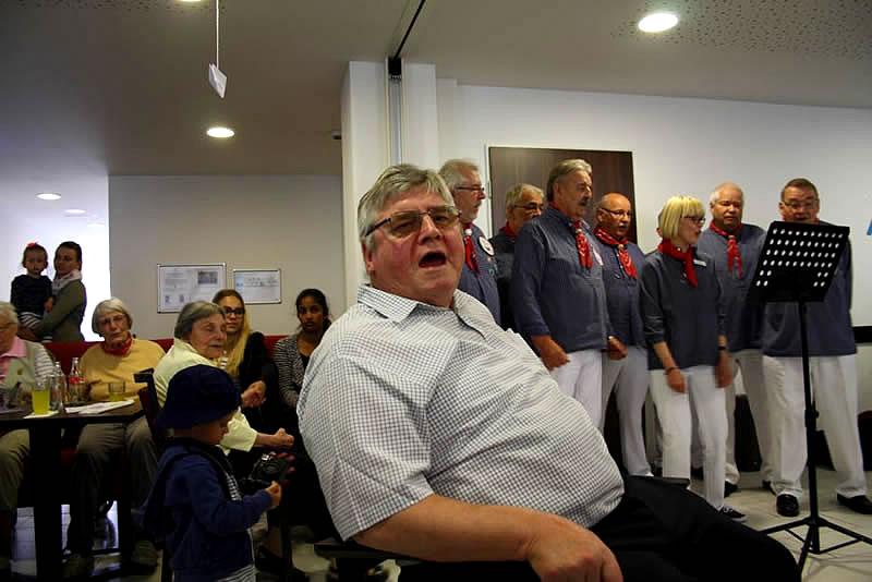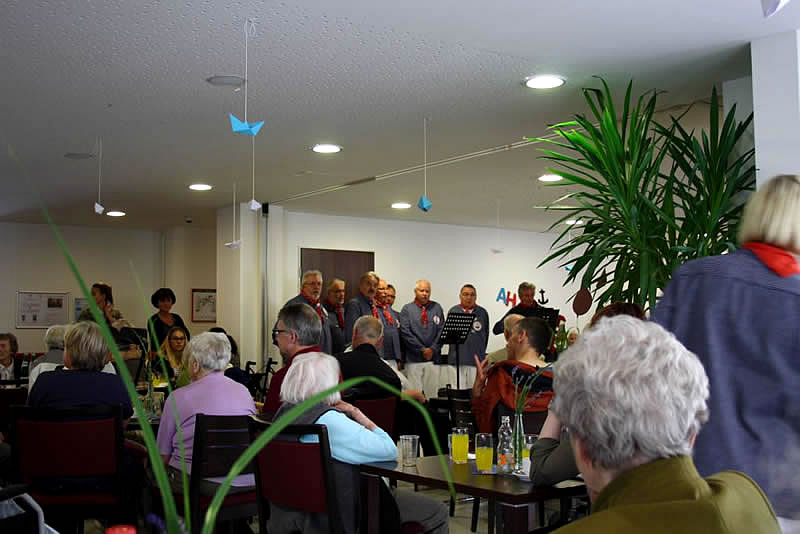 Der Shantychor der Soester „Einigkeit“ brachte ein 60minütiges Programm u.a. mit „Rolling Home, mien Deern, to di“, mit dem „Hamborger Veermaster“ und „La Paloma - ade...“ über den Golf von Biskaya zu den „Banks of Sacramento“. Zur Begleitung von Akkordeon und Ziehharmonika ging es für Bewohnerinnen und Bewohner, Nachbarn, Angehörige und Mitarbeitende im Schunkelrhytmus zur guten Laune.