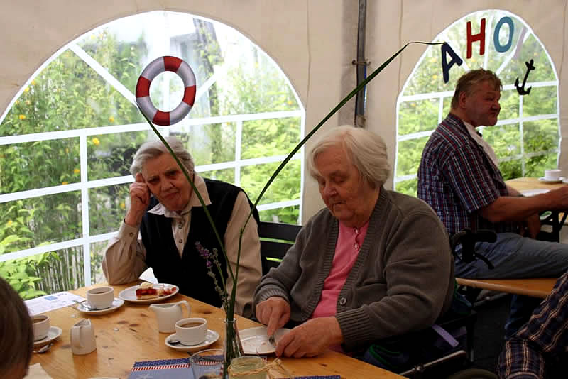 Sie lieben die Stürme und singen mit Inbrunst vom Törn um Kap Hoorn - dabei ist nicht einer von ihnen so richtig zur See gefahren: Beim Sommerfest wurde musikalisch die Stimmung von Fernweh, Liebe und Heimweh im Alten- und Pflegeheim, Hanse-Zentrum, verbreitet.