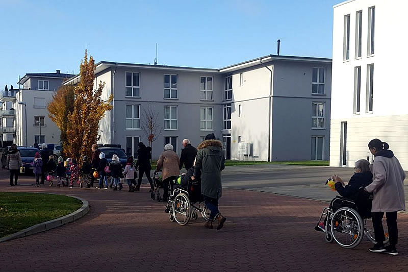 Zusammen mit dem Kindergarten und Studenten der Fachhochschule Südwestfalen wurde mit den Bewohnerinnen und Bewohnern des Hanse-Zentrums ein kleiner Laternenumzug gestaltet. Er wurde von St.Martins-Liedern begleitet und mit selbst gebastelten Laternen erhellt.
