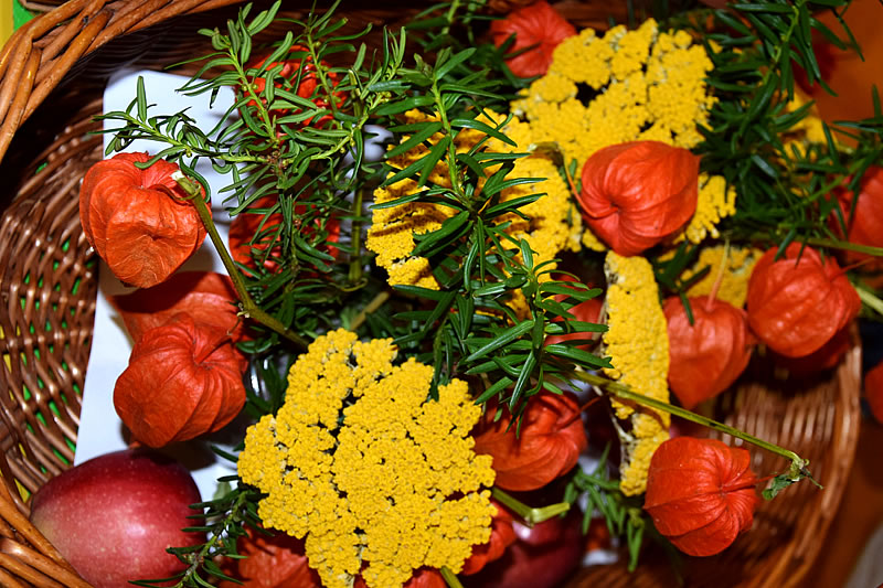 Sie gestalteten gemeinsam und dennoch mit dem nötigen Abstand den Gottesdienst, an denen die Bewohnerinnen und Bewohner, Mitarbeiterinnen und Mitarbeiter von Fenstern, Terrassen, Balkonen und Gärten teilnehmen konnten. Getreideähren, Brot „um das Herz zu stärken“ und viele Erntegaben machten den Dank sichtbar und spürbar.