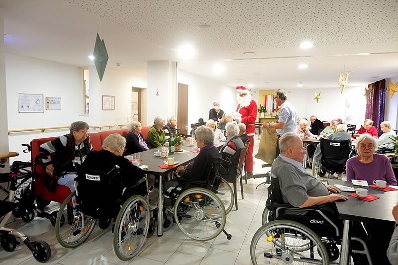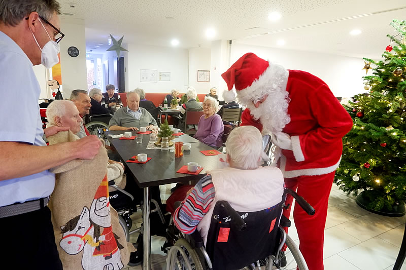 Es wurde gesungen und Gedichte vorgelesen und natürlich kam der Nikolaus vorbei. Dieser trug erst ein Gedicht für die Bewohner*innen vor und verteilte dann für alle etwas zum Naschen.
