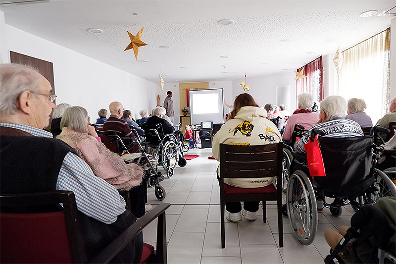 Alle, ob Jung oder Alt, hörten so gespannt zu, dass man eine Stecknadel hätte fallen hören können. Danach wurden zusammen Weihnachtslieder gesungen. Abwechselnd ein „neues“ von den Kindern und ein „altes“ von den Bewohner*innen. Eine für alle bereichernde und gelungene Veranstaltung, hieß es zum Abschluss.