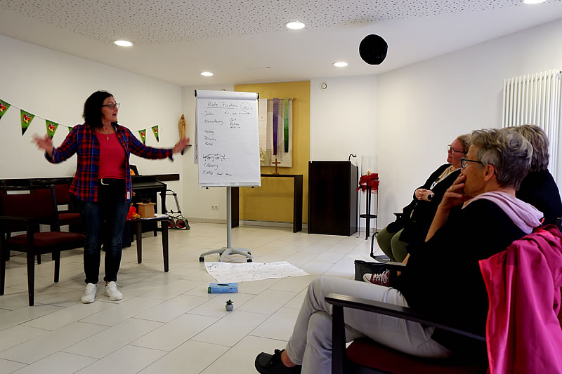Referentin war Sabine Meyer, Erzählerin und Mitbegründerin des „Erzähltheaters Osnabrück“ und leitet Studien zum Thema „Menschen mit Demenz und Märchen“ an. Themen waren Ressourcenaktivierende Märchenarbeit, Gruppenauswahl, Ort und Aufbau einer Märchenstunde, Aspekte des freien Erzählens und Auswahl von Märchen.