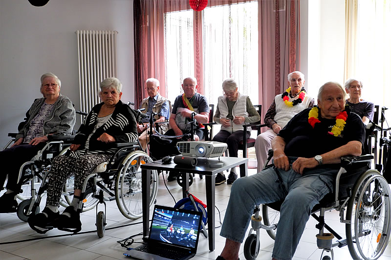 „Wir drücken unserer Mannschaft natürlich die Daumen.“ – Mitfiebern ist angesagt. Das erste Spiel der Frauenfußballmannschaft bei der WM in Australien gegen Marokko – selbstverständlich waren die Bewohner*innen dabei.