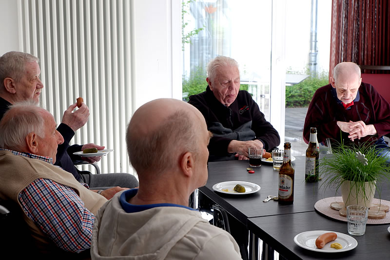 „Frühschoppen für die Männer“ hieß es am diesjährigen Christi Himmelfahrt-Tag im Hanse-Zentrum. Bei herrlichstem Sonnenschein gab es Sauerländer Bockwürstchen, Senf und Gewürzgurken mit Bier, Radler, Cola oder Fanta. Es wurde viel erzählt und gelacht und alte Erinnerungen an eigene Wanderungen zum Vatertag erzählt.